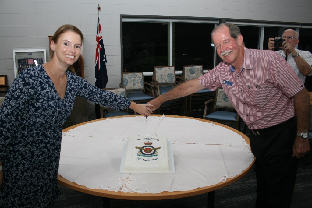 Past Presiden Barb Bower presenting AIRCDRE Tony Jones with his certificate as Branch Patron