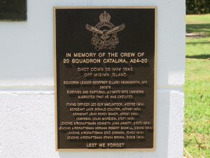 Below is the Battle of the Coral Sea memorial service dedication and blessing of plaques for the Catalina Aircraft that were lost with their crew photos 2017, in memory of 20 Squadron’s Air Crew of RAAF Catalina A 24-18 and A 24-20.